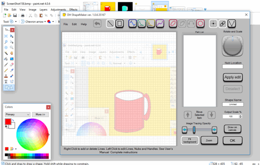 To create your own custom shapes in Paint.NET, you need to install a plugin, named ShapeMaker. This Paint.NET plugin has sufficient tools and provides a separate window to build a unique and custom shape. Output can be saved as *.xaml (Windows Markup File). Later on, you can use that shape in Paint.NET to fill colors and make it more beautiful.