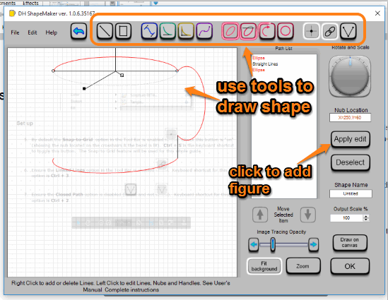 The screenshot above shows the window of this plugin. Seriously, I’m too bad in drawing, but anyone can be a pro in designing custom shapes with some practice using this plugin.