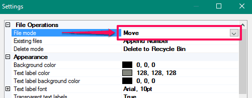 Step 2: Now one of the images from that folder will visible on its interface. You can move to next and previous images using the left and right arrow keys. After that, you need to access Settings. Here you need to set “Move” option for File mode option.