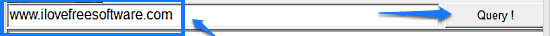 Step 1: Fire up the application, and enter the domain name/IP address that you want to query for its Whois information. Once done, hit the Query! button on the right (or press Enter).