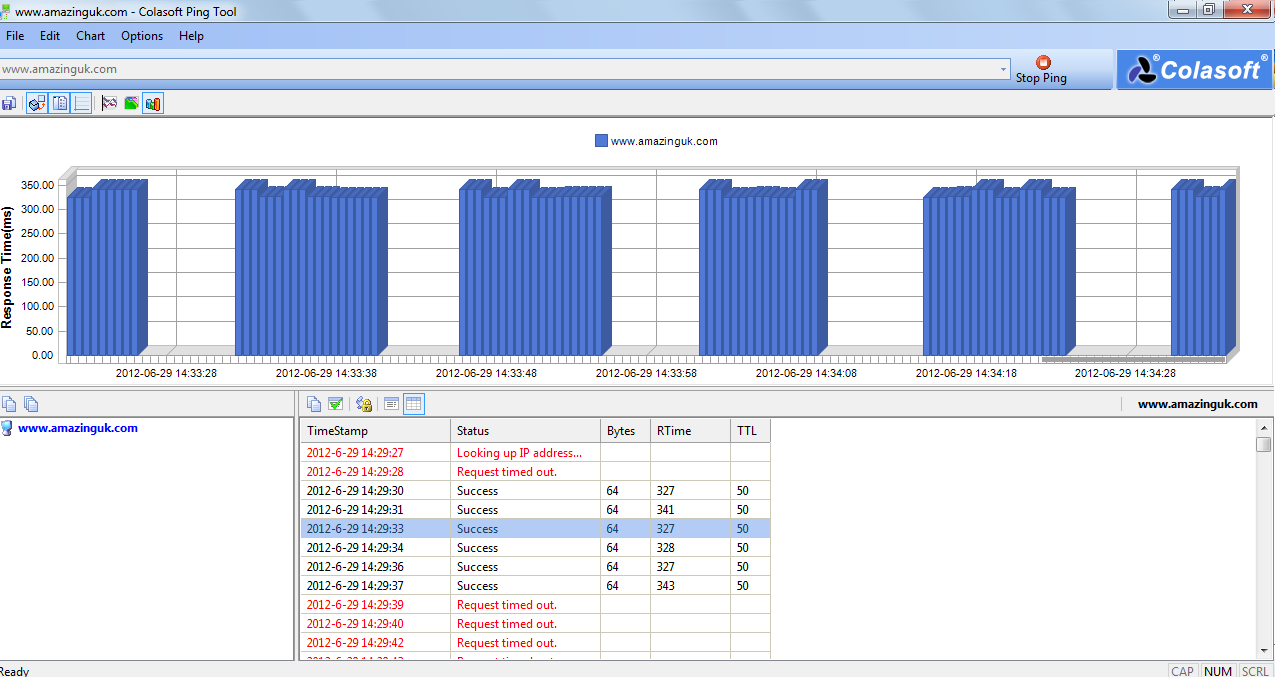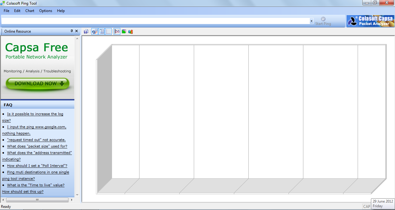 Once you are done installing the program on your system the next thing to do is launching the program. Once it gets launched you are presented with a screen with a blank chart and an FAQ section on the left of the main window. In order to start the software to carry out its activities you just need to insert the URL which you wish to Ping and track. Once you have inserted the URL just press the ENTER key and the process would be initiated.