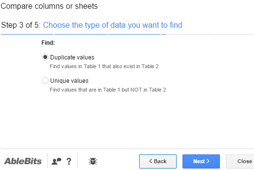 You need to follow only four steps that come in a wizard and then you can find and remove duplicate rows or columns. The way it works is, it first lets you select the range in a sheet or two different sheets and then automatically identifies duplicates from that range. After that, you can choose whether you want to delete them, move, copy, or highlight them.
