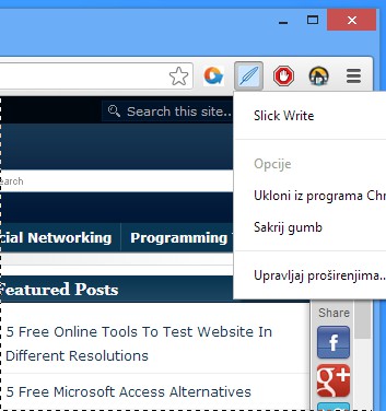 Slick Write addon doesn’t have any kind of special options, you just get an icon in the toolbar panel, which can be seen in the screenshot below. You need to select a chunk of text on the website where you’re typing text. After that, the only thing that you need to do in order to check that text back on the Slick Write website is a left click on the icon. This saves you time that you would normally spend copying and pasting text manually to the Slick Write website.