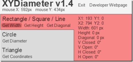 XYDiameter is a measuring software for measuring the lengths of rectangle, circle, and triangle. You can measure the width, height, diameter, and coordinates of triangle of pictures on your screen.