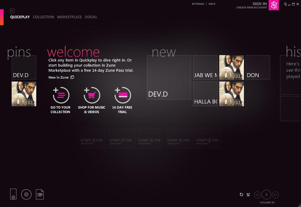Zune software also comes with QuickPlay option that lets you quickly play your favorite media files. You can setup Quickplay list with one click, and it will show up when you start Zune software.