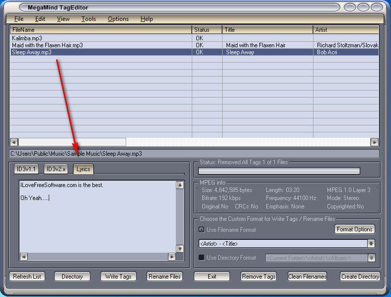 Free Tag Editor To Add ID3 Tag Information: MegaMind TagEditor