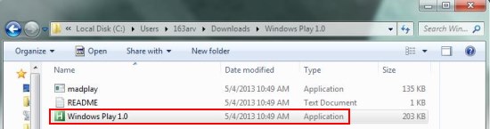 Windows Play is a freeware app and can easily be downloaded from its official website using the link given at the end of this article. The download will consist of a zip file of size 326 KB which you can unzip to extract the file contents. The unzipped folder will consist of an application file, which you need to double click on to launch Windows Play. Now let’s see how this free MP3 player works.