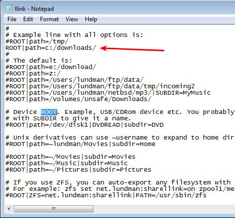 Once you’re there, find the line to which we pointed with the red arrow. The ROOT line is where you need to paste the path to your media directory, where music, movies, and songs that you want to stream are located. Make sure that you save the file before exiting. With the correct line written into llink.conf, the only thing that you need to do now is run the llink executable.