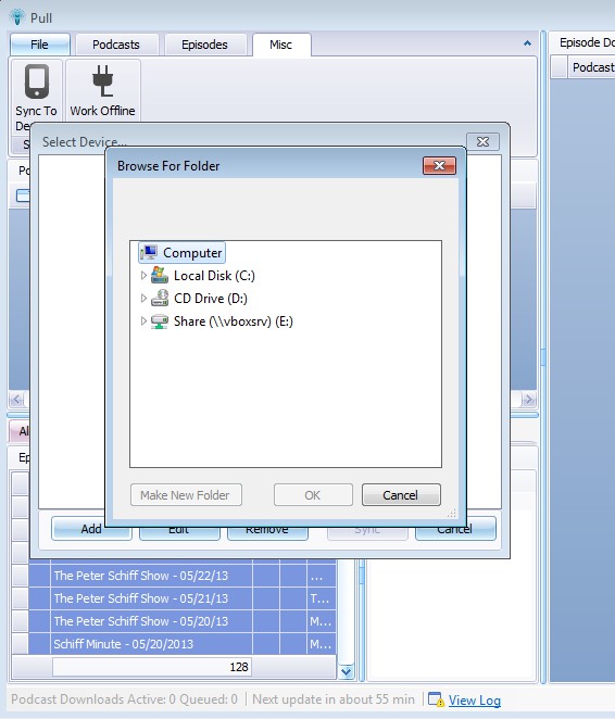 Once that the download finishes, you can access downloaded podcasts by opening up the My Music directory or you can sync the downloaded files with your device by opening up the Misc tab.