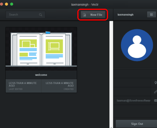 Here is the link of its homepage from where you can download the zip file of this software. When you will launch the software, it will prompt you to sign into your Vectr account. If you don’t have any account, you can create the one directly from its interface.