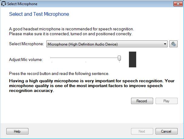 When you start Dictation Pro for the first time, you’ll be greeted with this window. Select your default microphone, which has to be good quality, to minimize noise and other sound pollution to a minimum. In this wizard, you’ll create a profile and go over some basic exercises. The more you practice, the more accurate will Dictation Pro turn speech into text.