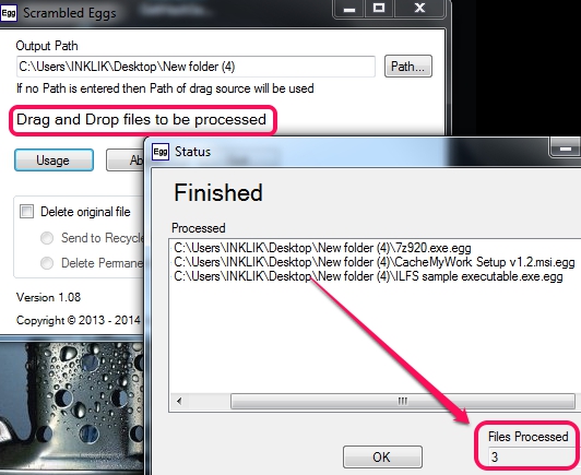 Its interface is very simple, so you won’t find any trouble using it. Here, you need to drag n drop executable files that you want to send through email. But before that, set an output location to store output files. Apart from this, it also lets you enable ‘delete original file’ option that will delete original files from source location automatically, after processing files. Once you have adjusted settings, you can drop files on its interface and it will immediately process them.
