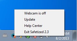 To be notified when someone is using your webcam you just need to install and run Safetized. Every time that someone starts up the web camera, whether it’s you or a malicious hacker that infected your computer, there will be a pop-up notification telling you about it. You can also right click on the system tray icon of this free webcam protection software to see what the current status of your web camera is.