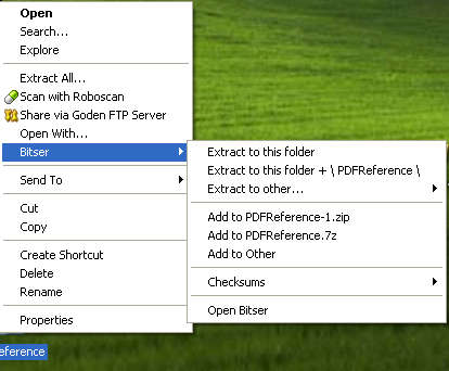 On the image above you can see the Bitser context menu, where you can quickly extract or create archives by simply right clicking on files and archives on your computer. Bitser is a free application, and it’s very lightweight on the computer resources, make sure that you give it a try, because it could save you a lot of headaches.