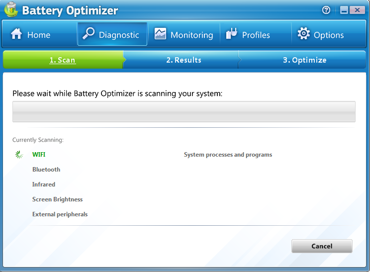 You can run diagnostics by clicking on the “Run Diagnostic” button on the main screen or by visiting the diagnostic menu present near header of the software. The diagnostic process comprises of three main steps i.e. scan, result, and optimize. While the diagnostic process is on you will not be able to use your laptop. The process takes some time and makes some changes like: