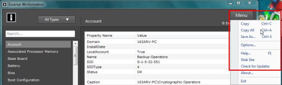 • Copy information to clipboard.winformation options