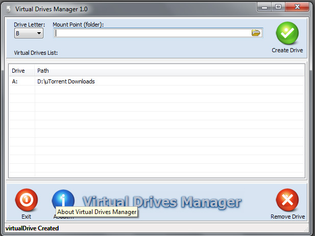 ‘Virtual Drives Manager’ manages to fulfill a need of computer users that has been known for some time now, but nobody thought of addressing it. The number of logical drives on a computer often falls short. Although Windows now provides a logical disk creator in its latest operating systems, the novel approach taken by the developers of this program is a lot simpler.
