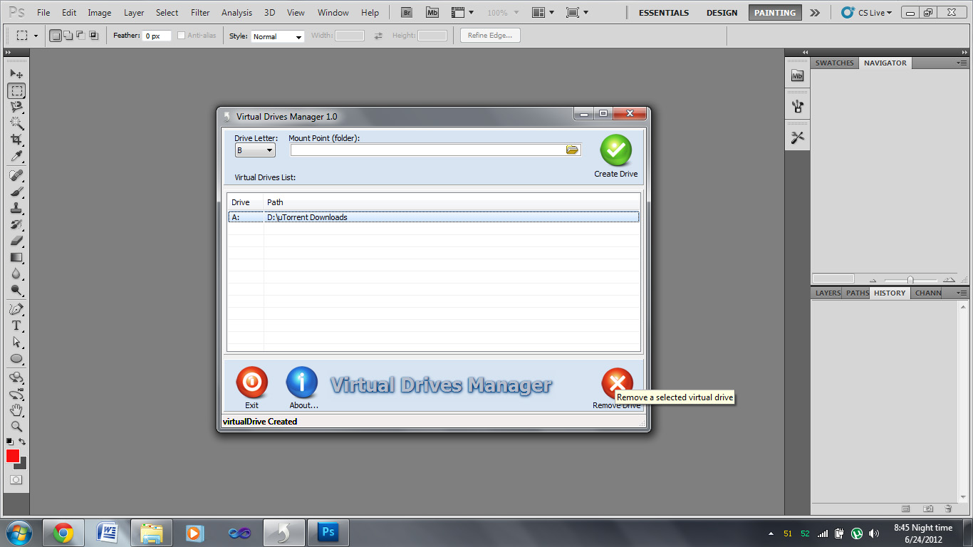 This is a very simple way of accessing your frequently used folders without cluttering your desktop. The logical drives can also be renamed to show what data they contain, so it won’t be much hassle to find out which partition contains what data. All in all, Virtual Drives Manager is a good and light software to have on one’s system.