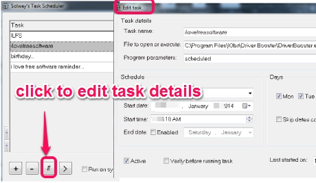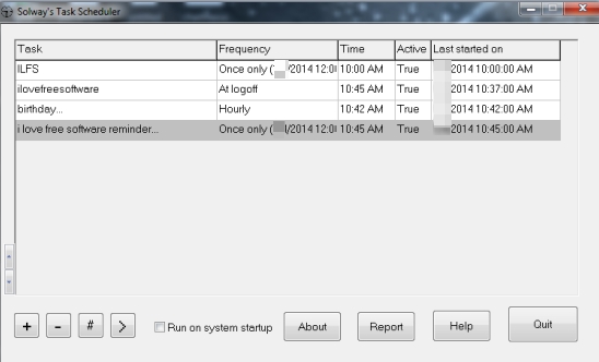 Solway’s Task Scheduler’s simple interface is visible in above screenshot where you can see the list of all scheduled tasks.