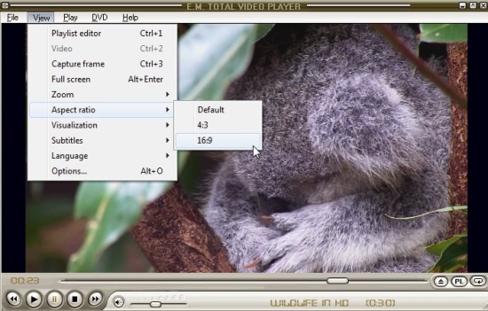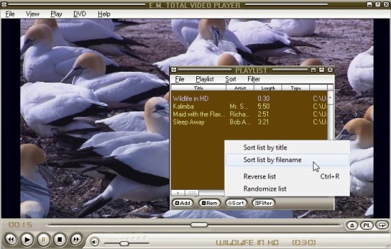 E.M. Total Video Player is a free media player that can play audio and video files in lots of popular media file formats. It’s a small and handy player that comes with a number of built-in audio/video codecs to support playback of almost all media files on your system. You can create a playlist of your favorite music tracks (both audios and videos) and play them in succession or in random order. Plus you can play DVDs, CDs, or Flash files using this player, and even capture snapshots of selected video frames.