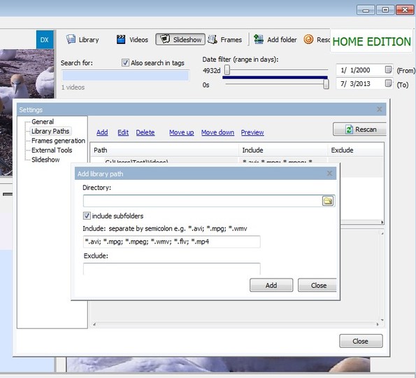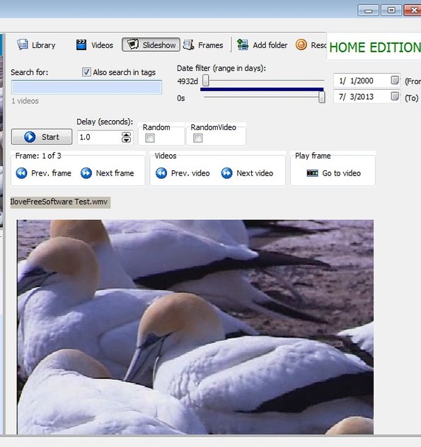 To play videos from the library, you’re gonna have to use the video player in the top left corner. What you see on the screenshot above is one of the more interesting features of Video Manager, video slideshow player. Slideshow player plays video step by step, after a certain number of seconds.