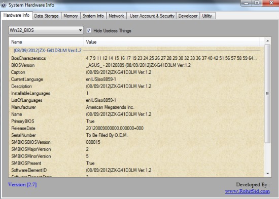 Above screenshot shows interface of System Hardware Info which is not so attractive, but helpful enough to easily view detailed information of selected option.
