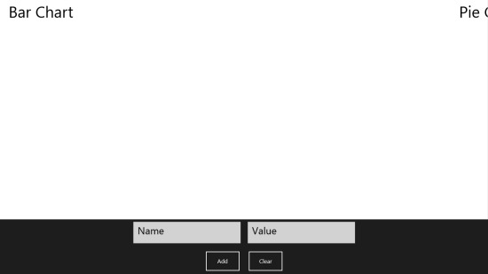 • To view data you entered in pie value just slide the app window to the right and you will have a color coded pie chart in front of you without you needing to do anything. The app gives you the options to add and modify the bar and pie charts in Windows 8.