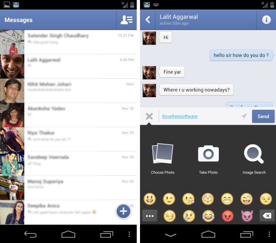 Now you do not need a Facebook account in order to sign up in this new version of the application. All you need is a name and a phone number. Facebook is providing this feature so that people without Facebook account will be able to use this application with ease. The way things has been changed; shows that Facebook is gearing towards building a platform to replace messengers like WhatsApp, BBM, Kik, iMessenger etc. and SMS.
