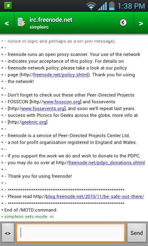 Simple Irc as another android IRC client that I would like to recommend. As the name suggests, the application is simple in all its aspects. But it offers all the features that is required in a good IRC client. The app is very simple and intuitive. The application is fast and light. The interface is quiet nice. The app also supports mIRC colors and emoticons. To sum it all the app is simple in every aspect but has all the features that should be there.