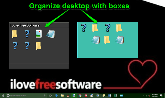 This is a list of 5 best free alternatives to Fences. Using these software, you can declutter your desktop screen by organizing all the files, folders, and program shortcuts into shaded areas or boxes on desktop. These tools can come handy in case you want to keep your desktop clean and organize all the desktop items in different categories. The best part about these software is that they let you clean up your desktop without even deleting the files, folders or program shortcuts from the desktop screen.