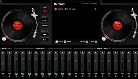 As you reach the interface of the website you will see an entire console available in front of you; two turntables, options for beats and effects, reverse, play/pause music, brake, and more. The music you add on the deck can be taken from YouTube and you can also create a playlist of your favorite music. The tracks you create by mixing music are also saved for you. Keyboard shortcuts to add loops, instrumentals, beats etc. to your track are also provided.