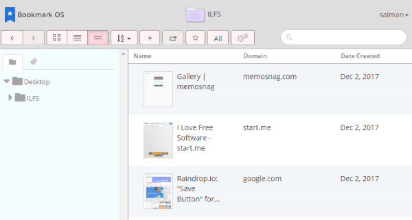 To use Bookmark OS, you would need to first create an account and then it will ask you to either install the browser extension or place the bookmarklet. Once you choose any of these options, you will be able to bookmark pages with just a click on the extension icon or the bookmarklet. After that, you will be able to open, edit, move, and share the bookmarks from the folders. Some of the features are paid like the list view customizer, nested folders, Dropbox sync, dead link finder, etc.