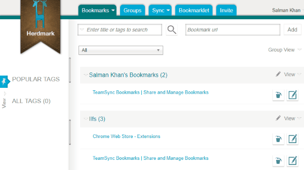 Herdmark is probably the best free online team booking service that allows you to bookmark web pages, manage, and share them with ease. You can easily bookmark pages using a bookmarklet or you can manually add bookmarks by entering URLs. To collaborate on the bookmarks, you can create groups (public, private, and secret) and then invite members to them. After that, the members will also be able to access the bookmarks you have added, edit them, and also add new bookmarks. It lets you create unlimited bookmarks, groups, and also invite as many members as you want.