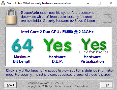 SecurAble is another free tool that you can use to verify if a PC supports hardware virtualization or not. This is also a portable tool means you can simply run it to get the information without installation.
