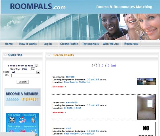 Roommates is also a free service using which you can find roommates or rented rooms to live. This free service basically let’s you find perfect roommates for you within the United States. It covers almost all major cities nationwide. This free roommate finding service even allows you to choose the criteria on the basis of which you want this website to find a perfect roommate. As you are allowed to specify the gender, age group, city and state. On the basis of your desired search criteria, it shows you the results. So this way, you can easily find roommates and new rooms to live. Try Roommates for free.