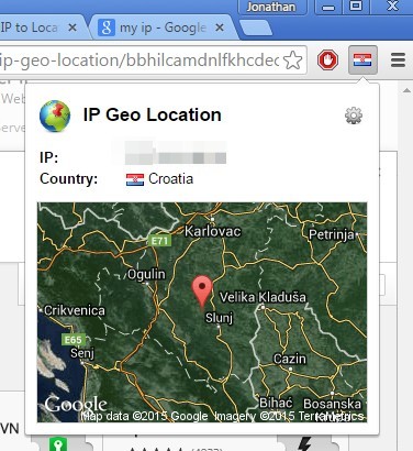 IP Geo Location is an extension that’s going to check the location of your current IP from a top right corner drop down. See image above.