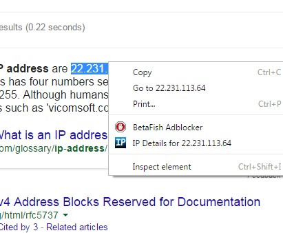 Next up is an address lookup extension that integrates into the right click context menu and allows you to look up the location of IP addresses written on websites.