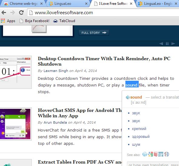 With the help of LinguaLeo, you’ll be able to find out the meaning of English words in Russian and that way, if you’re Russian, slowly but surely expand your vocabulary. Find interesting articles online and start reading. When you come across a word you don’t understand, right click on it and you will see a translation of it. You’ll have to register an account on the LinguaLeo website in order to use the extension.