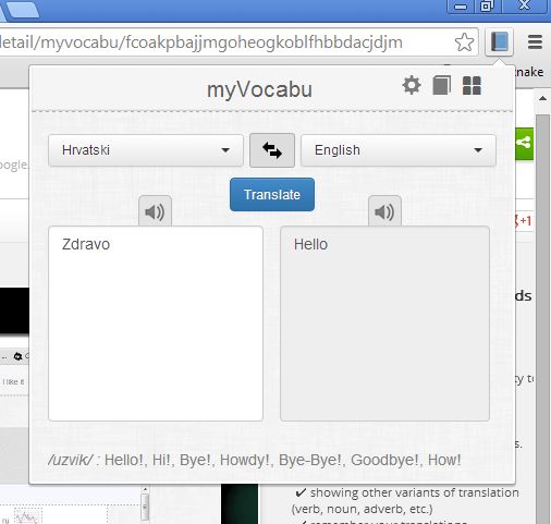 It’s a dictionary extension that uses Google Translate in order to translate words or whole sentences directly from the drop down window of the extension. You can use it to learn words, not just English, but any language basically.