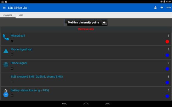 LED Blinker has the option to test LEDs, to see if they are actually functioning and if they are present and to see which colors are available. Alternative to LEDs that I was mentioning is the screen of your device. This LED notification manager will blink the screen if no notification LEDs are found on your device. Small drawback is that the Lite version doesn’t show notifications for all apps, only missed calls, SMS, Facebook and WhatsApp.