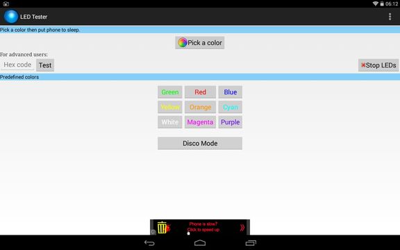 It’s a very advanced LED tester, which lets you select predefined colors, enter a color using hex codes or a color picker, and it also has something called disco where it mixes up all the colors, disco style.