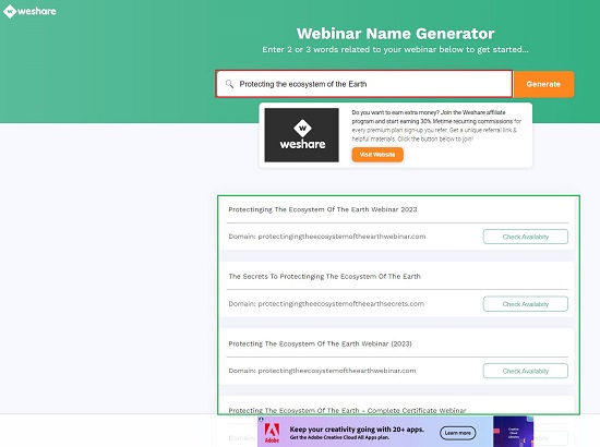 Let’s move to the next name generator for webinars namely, Weshare Webinar Name Generator. You can click on the link that we have provided below to navigate to this website.