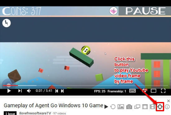 Frame by Frame for YouTube is another YouTube Chrome extension to play YouTube videos frame by frame. You can also use this Chrome extension to change the FPS (Frame Per Second) rate of a YouTube video to 25 and 30. Apart from that, it also lets you toggle the visibility of controls on the YouTube player and as I mentioned play YouTube videos frame by frame. This Chrome extension simply assigns a number of different hotkeys by which you can use to navigate a YouTube video frame by frame. Download this Chrome extension from the link provided above and then play a video on YouTube. Now, pause the video and press the “,” hotkey to move to the previous frame and the “.” hotkey to move to the next frame of that YouTube video. To change the FPS of a YouTube video, press the “O” hotkey and to hide YouTube player controls press the “/” hotkey.