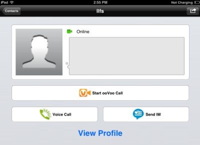 The iPad app works like a charm by allowing you to do video chat, make a voice call, and send an instant message between ooVoo users. The app works only between two ooVoo users. Just add your fiends by the ooVoo username or email ID which you have registered and then communicate for free with your ooVoo buddies.