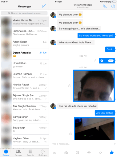 Even though this app introduces a nice layout especially for iPad, I actually found that a few of the features that are present in iPhone app are missing in the iPad version. For example, iPhone Facebook Messenger has Split Selfie and video recording option, which I was not able to find in this iPad version.