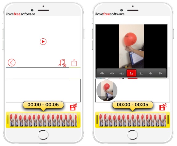 If you have trimmed the video into multiple parts, then you can also apply different playback speed to them and then merge them together while exporting. Additionally, you can also convert videos into fast motion videos by increasing the speed by 2X, 4X, or 8X. Another useful feature is that it allows you to add music to the videos from app library, iPod, or keep the original audio. This app also shows ads in the free version.