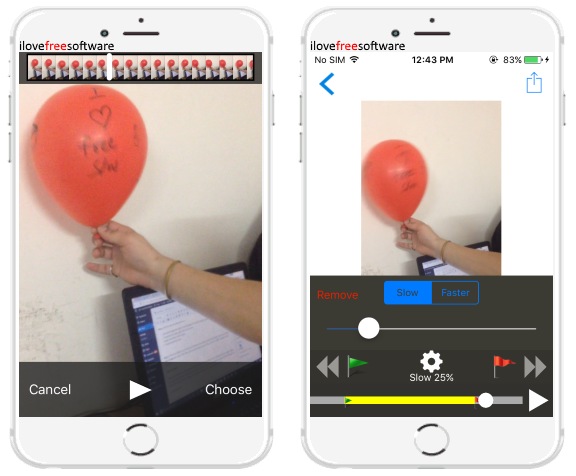 Here is a list of 4 free slow motion apps for iPhone. These apps can be used to create slow motion videos by simply reducing the playback speed of the videos. They allow you record new videos or import existing videos from the camera roll and then convert them into slow motion videos. Some of these slow motion apps also offer a trimming tool so that you can trim and choose any specific part of a video which you want to convert into a slow motion clip.