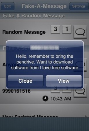 Fake-A-Message is a free iPhone app to send and receive fake messages on iPhone. This iPhone fake message app is a nice messaging app to make fool of others saying that you have got an important message and you have to leave.