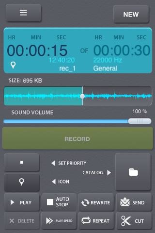 The Pocket Recorder App, also allows you to cut the unwanted recording parts with ease. The best feature is that it allows playing the recording on the cut screen when editing, and thus saving time.
