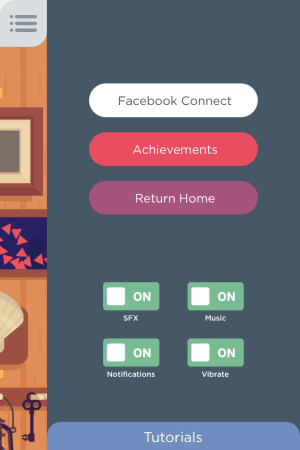 Just connect the same colored dots with a vertical line and keep on going. The 3 horizontal line icon you see on the top right corner, will take you to the settings page. Here, you will be given options to connect to your Facebook account if you haven’t already done that. View you achievements on the leaderboards, which will only be visible if you are signed in to game center. Then you get the regular options of turning SFX, Music, Notifications, Vibrate on or off. You will see a tutorial tab at the bottom of this page, which when pressed will take you to the tutorial page. This page will have basics about the game in a step by step manner for your understanding. It will also give you info about squares and bombs, which you will find later on in the game as boosters.